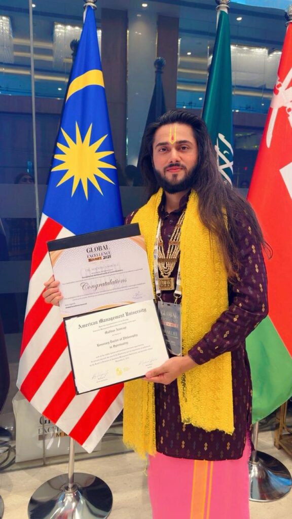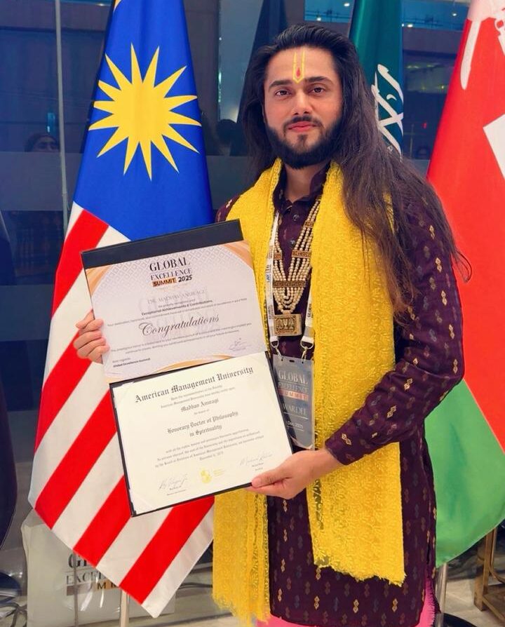 दिल्ली–गुरुग्राम स्थित वेलकम होटल बाय ITC, कपास हेरा में 7 दिसंबर, रविवार 2025 को आयोजित भव्य समारोह में अमेरिकन मैनेजमेंट यूनिवर्सिटी ने डॉ. माधव अनुरागी को डॉक्टर ऑफ फ़िलॉसफ़ी (PhD) की मानद उपाधि से सम्मानित किया।