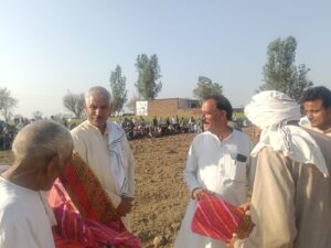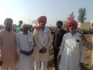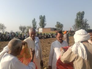नगला खारी गांव में आयोजित दंगल कार्यक्रम के दौरान पंचायत सदस्य डीएम साहब का स्वागत करते ग्रामीण।
